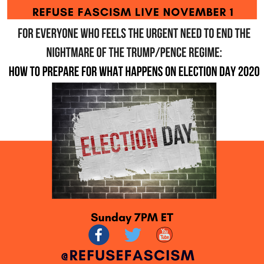 RefuseFascism LIVE: For Everyone who feels the urgent need to End the Nightmare of the Trump/Pence Regime: How to Prepare for What Happens on Election Day