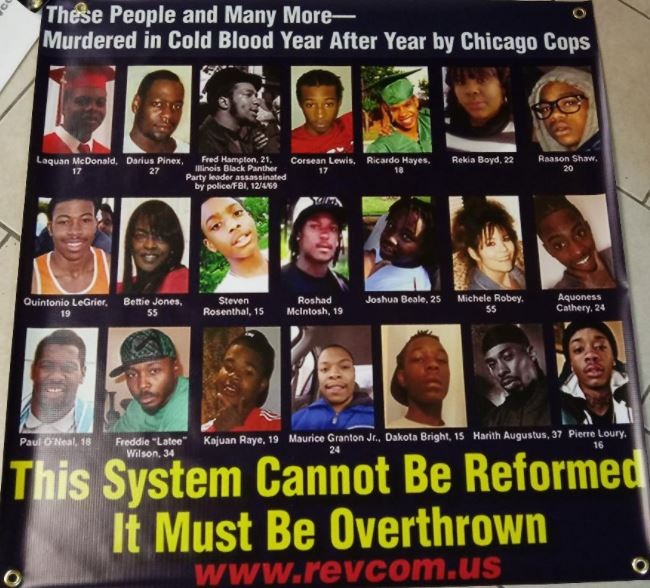 The Revolution Club, Chicago, is calling on “All who want a better world” to join this march which is one of the support actions for a march to the South Los Angeles Sheriff's Station. The call for June12 says: “Show the World: We Are Getting Organized Now For REVOLUTION, NOTHING LESS!”. The revolutionary leader Bob Avakian has said that the words “justifiable homicide” pour gasoline on the already burning wounds suffered by people whose loved ones have been murdered by police. We know this to be true because all of us have had to bury loved ones who were killed by police. We, the undersigned, call on you to support the Revolution Club by spreading the word about June 12, joining the march and/or finding other ways to support it. [The march will be followed by a car caravan for people unable to walk the route.] 3pm Saturday June 12: Gather at 63rd and Halsted. March to the 7th District at 63rd and Loomis. Signatories to date: Gloria Pinex, mother of Darius Pinex murdered by Chicago Police from the 7th District, January 2011 Freddie McGee, father of Freddy Latrice Wilson murdered by Chicago Police, November 2007 Minister Collier Cannon Baggett, grandmother of Jimmel Cannon shot 4 times by Chicago Police at age 13 (Jimmel survived the shooting), July 2011 Panzy Edwards and Makayal Edwards, mother and sister of Dakota Bright murdered by Chicago Police November 2012.. |