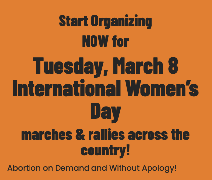 On March 8, International Women’s Day, we come back with creativity and growing numbers in small towns and the big cities, filling the streets with serious determination and rebellious joy. We will puncture the stifling atmosphere of capitulation to a great injustice and compel all to take notice, inspiring more people to join us. We start organizing now.